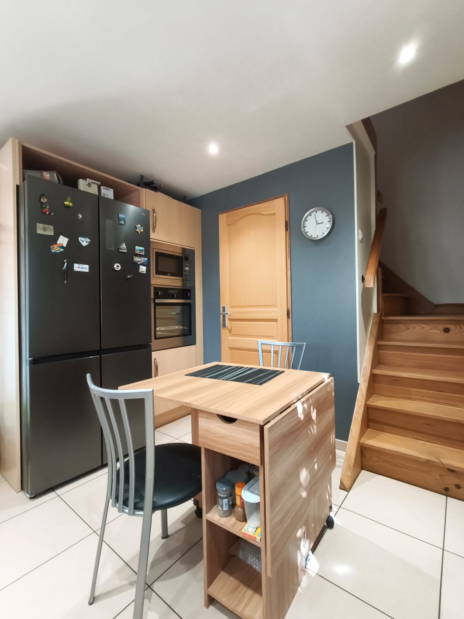 D’une surface d’environ 115 m² habitables répartis sur trois niveaux, elle offre des espaces chaleureux et parfaitement agencés.
