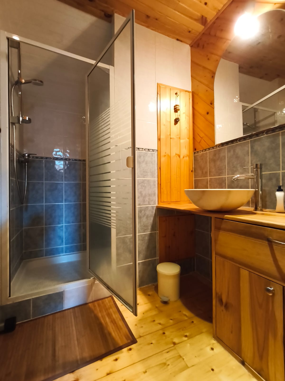 Côté confort, la maison est chauffée par une cheminée à bois, diffusant une chaleur douce sur l’ensemble des niveaux.